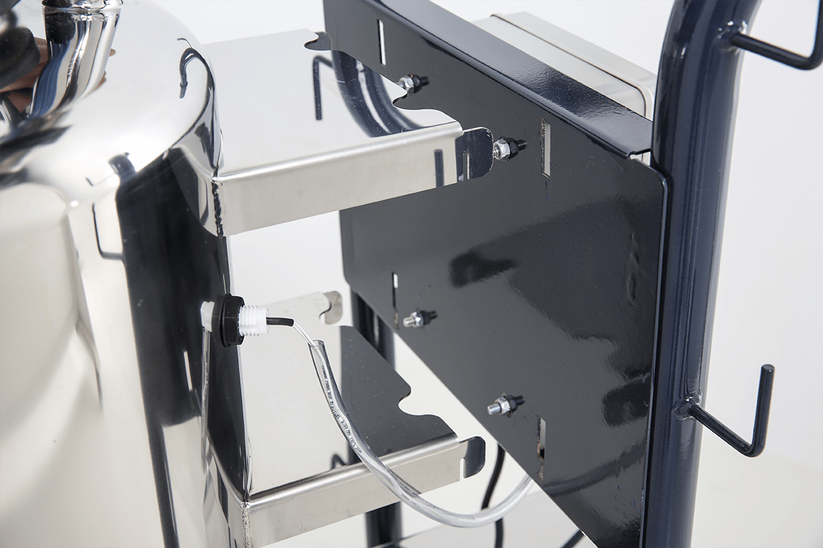 Reservatorio para almacenamiento temporario de la leche, todo en acero inoxidable AISI 304 con capacidad para 50L. Antes que la leche sea enviada de forma automática para el enfriador, la misma permanece almacenada en el reservatorio.
